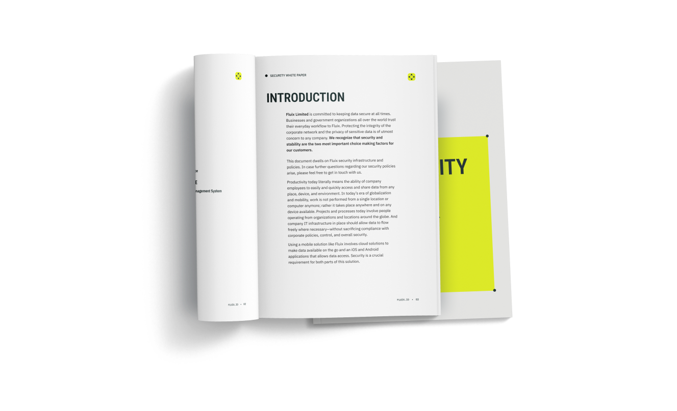 This document dwells on Fluix security infrastructure and policies. In case further questions regarding our security policies arise, please feel free to get in touch with us.