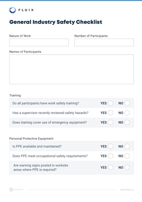 While it is possible to use paper checklists, enterprises that rely on software for document workflow management may want to create digital checklists that can be filled out anywhere at any time, even when field workers are in locations without access to an internet connection. The most thorough checklists account for several aspects of safety: